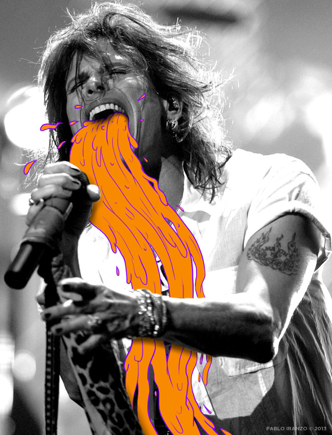 Pablo Iranzo é designer venezuelano e o autor dessa série intitulada “Epic Pukes” onde astros da música vomitam uma gosma colorida enquanto cantam.